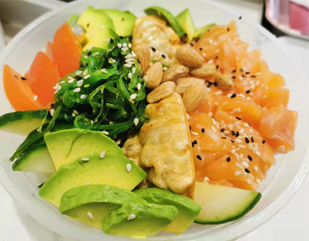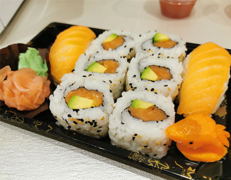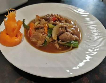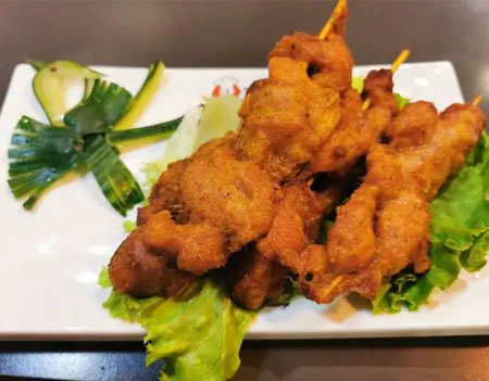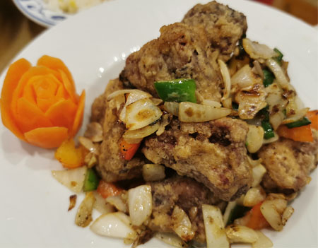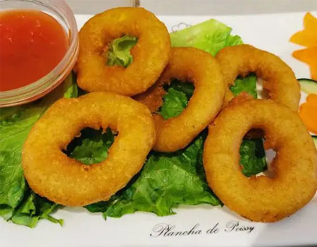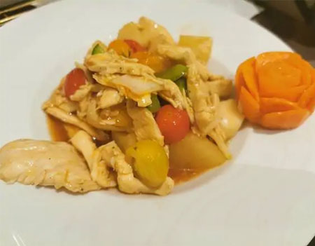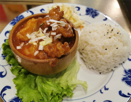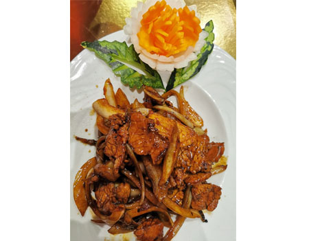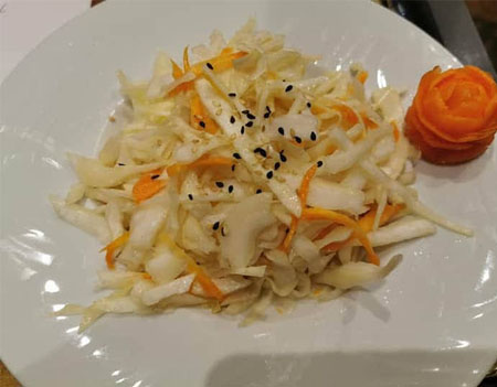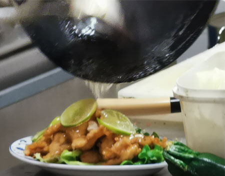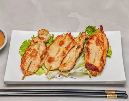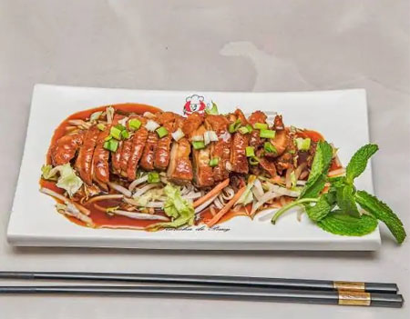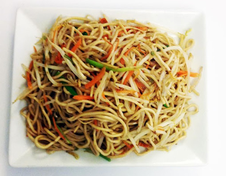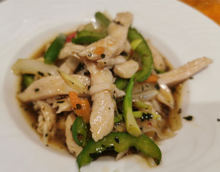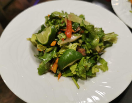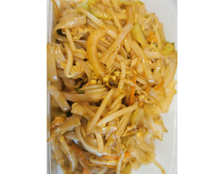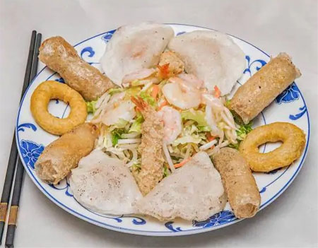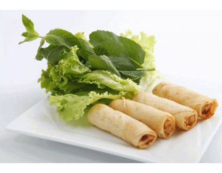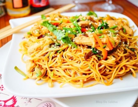 vermicelles de riz,nems poulet ,poulet aux oignons,salade;soja