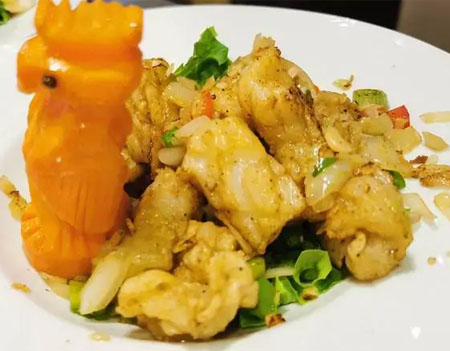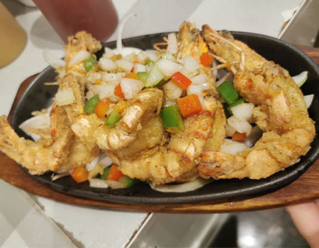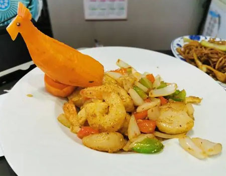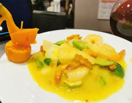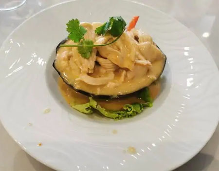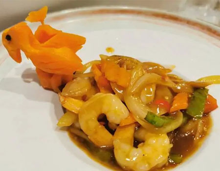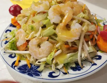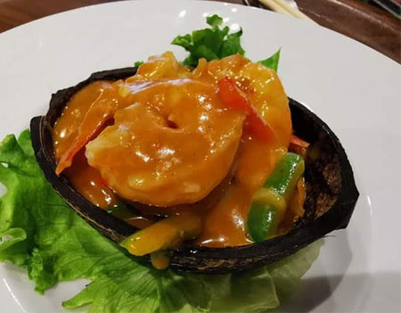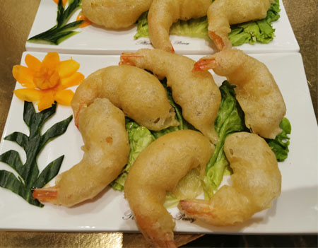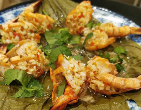 Grosses crevettes a la vapeur a l'ail a la feuille de lotus